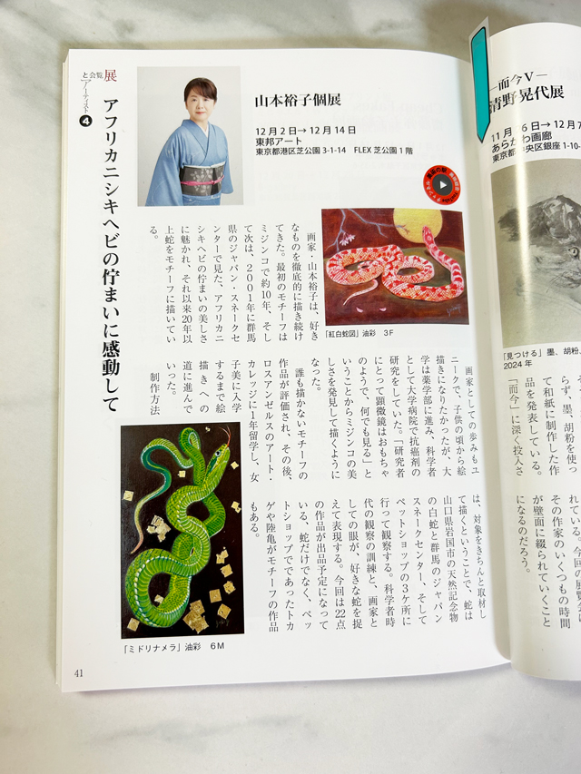おしゃれなヘビの油絵・新作2点を出品予定です。