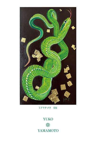 ヘビをモチーフとした作品「ひなたぼっこ」(サイズF50)を出品しております。